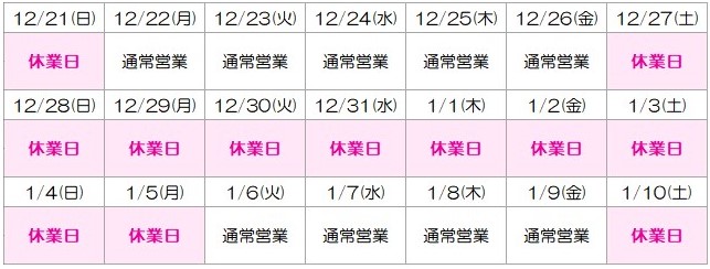 ▪休業期間:2025年12月27日(土)~2026年1月5日(月)